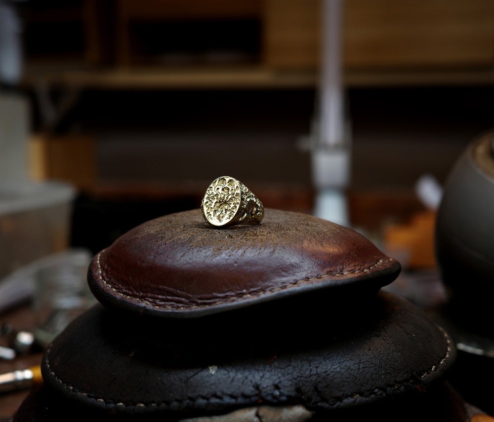 Castro Smith is an award-winning London Goldsmith and traditional hand engraver, with roots in painting and printmaking. His distinctive style, both illustrative and painterly, is evident in the intricate designs of his rings, which are often inspired by history, mythology, and the natural world - subjects that have always fascinated him.