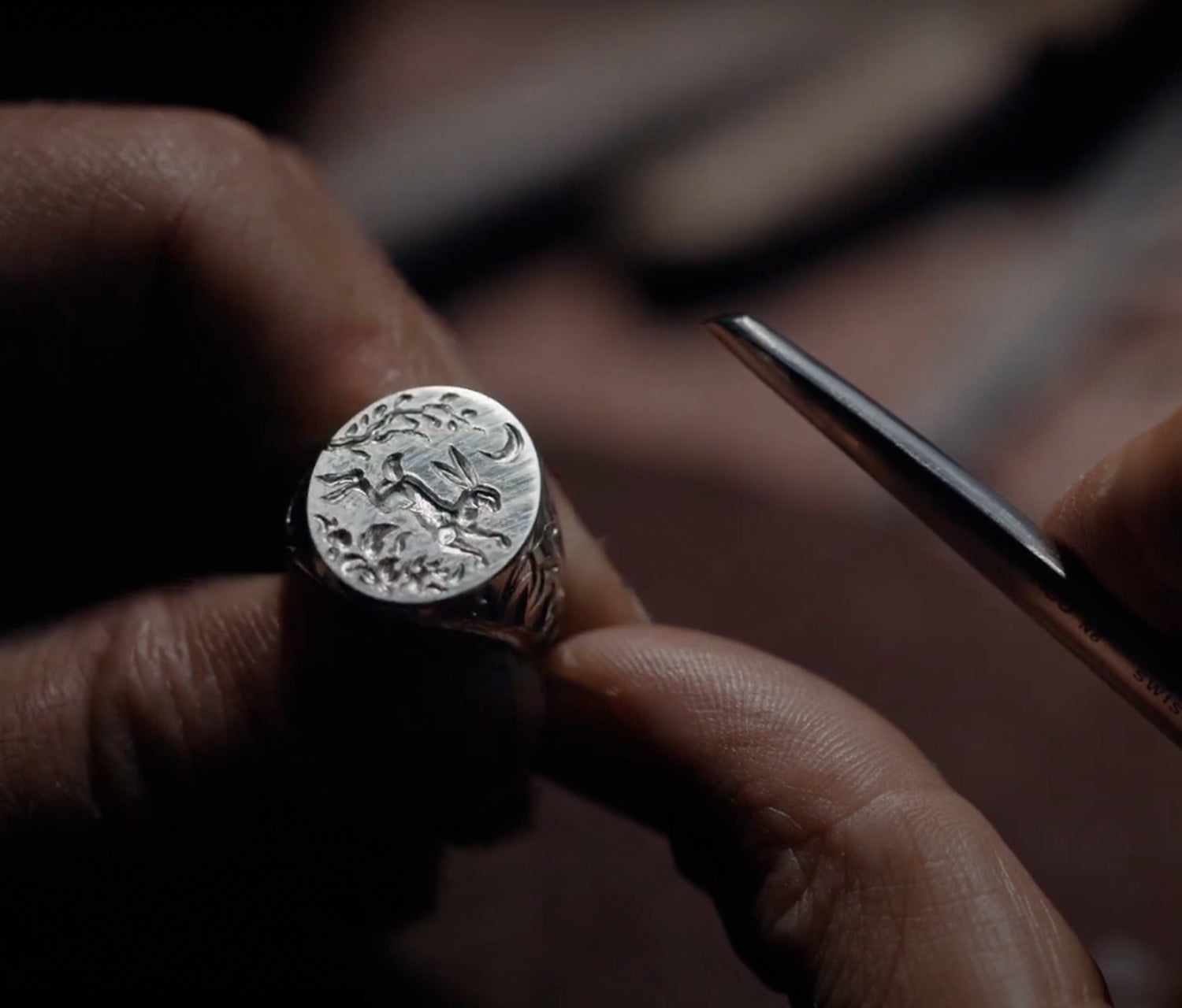 Castro Smith is an award-winning London Goldsmith and traditional hand engraver, with roots in painting and printmaking. His distinctive style, both illustrative and painterly, is evident in the intricate designs of his rings, which are often inspired by history, mythology, and the natural world—subjects that have always fascinated him.