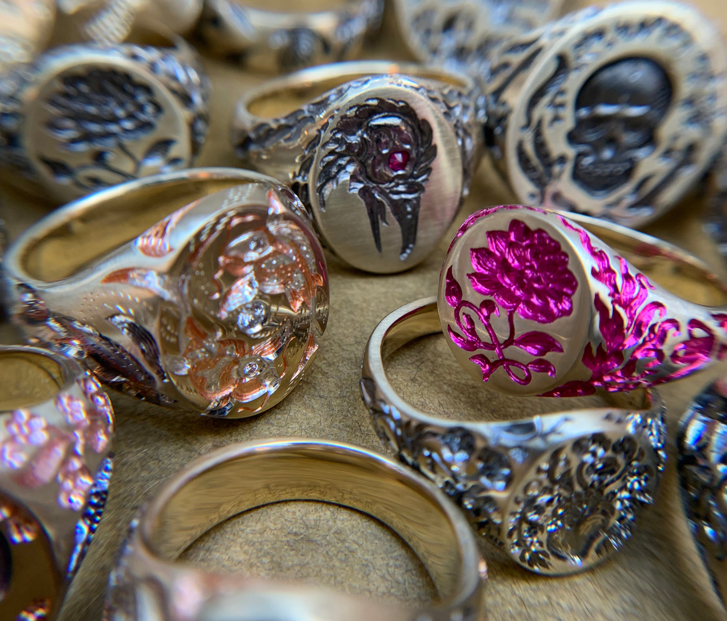 We always make a conscious effort to source stones from reputable suppliers. We regularly use lab-grown diamonds, and buy direct from fair-trade mines. We are also always happy to work with our clients’ own stones.