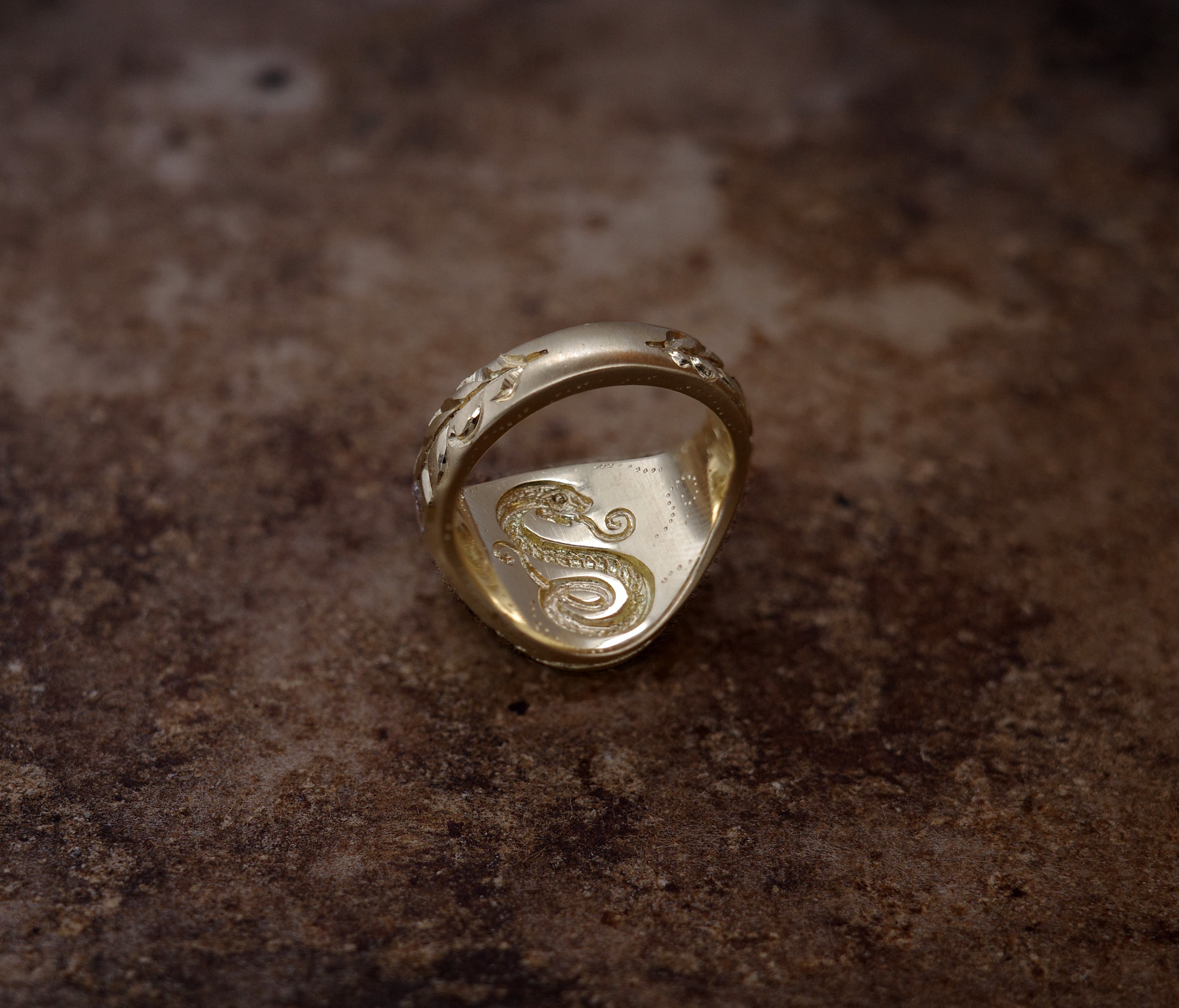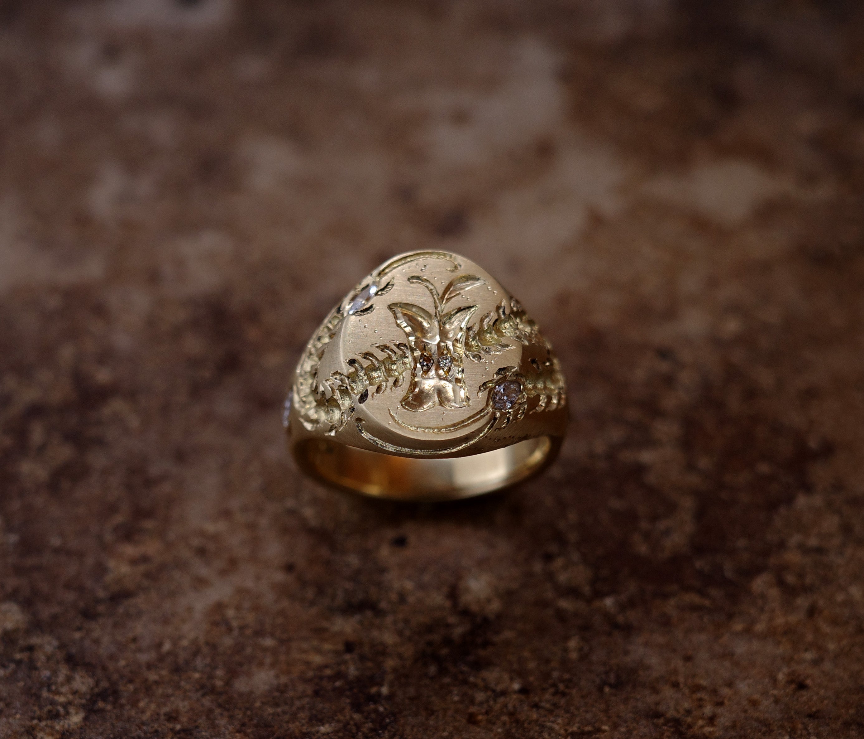 Your Castro Smith piece is crafted to last a lifetime. While fine jewelry is durable, it remains delicate and should be handled with care. Over time, your piece will naturally wear and evolve. This can include more visible engraving, slight darkening inside as it accumulates "life," and signs of normal wear such as scratches and small dents.
