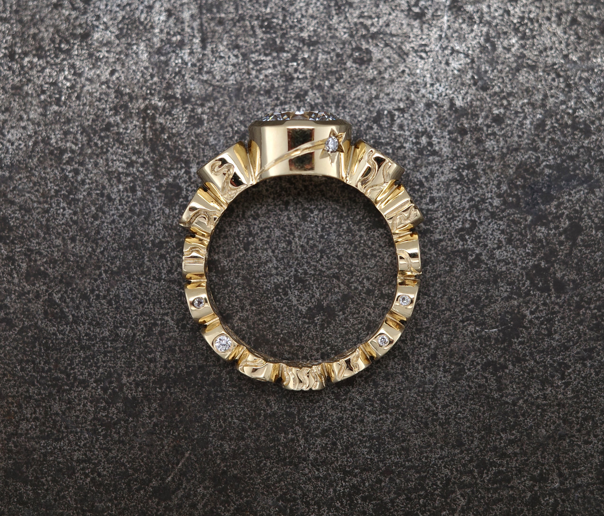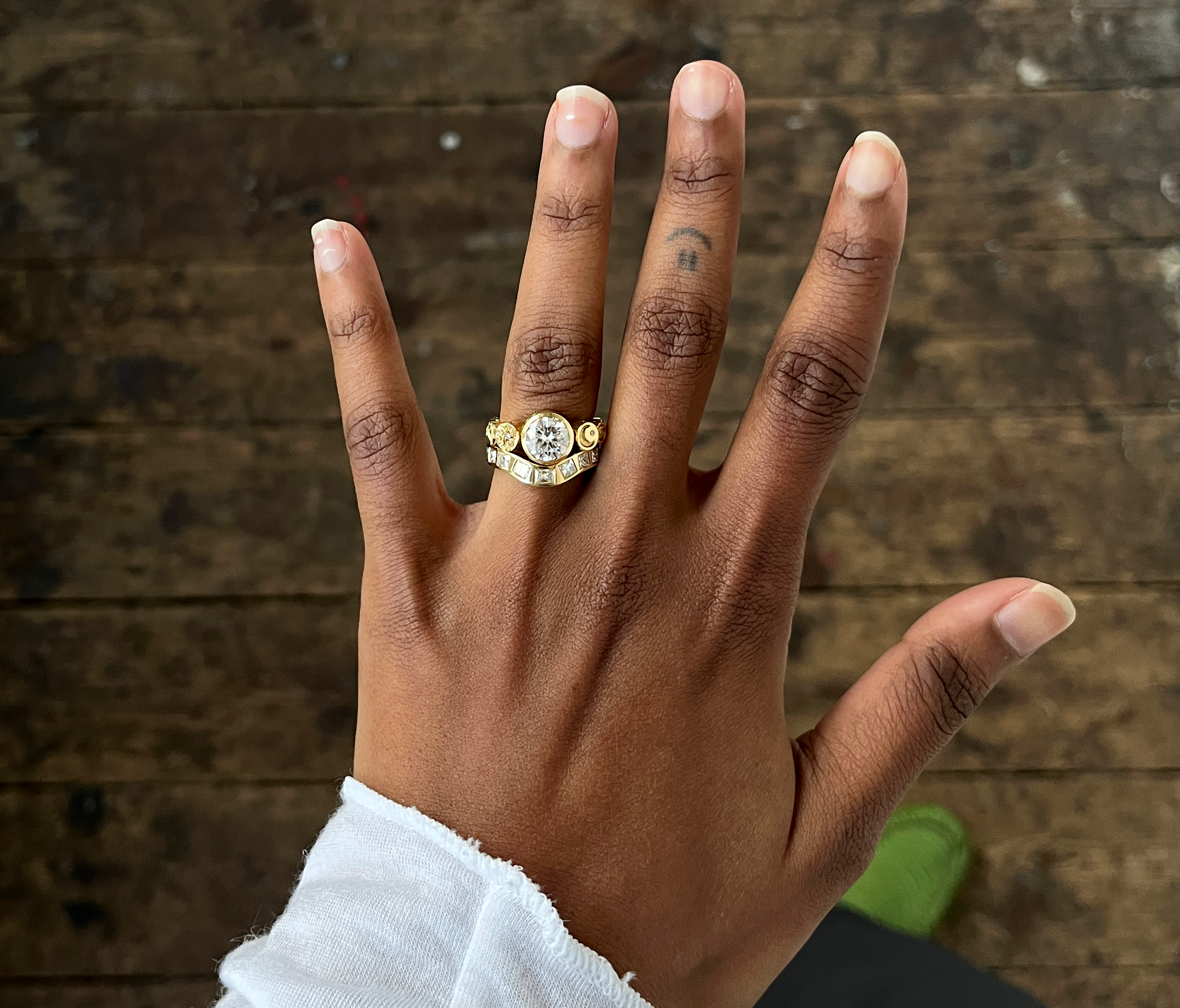 We always make a conscious effort to source stones from reputable suppliers. We regularly use lab-grown diamonds, and buy direct from fair-trade mines. We are also always happy to work with our clients’ own stones.