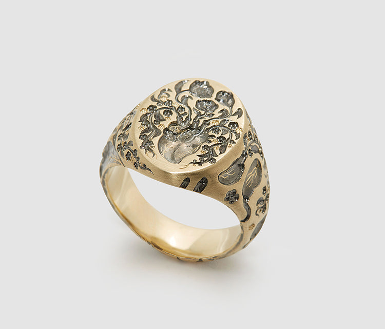 Your Castro Smith piece is crafted to last a lifetime. While fine jewelry is durable, it remains delicate and should be handled with care. Over time, your piece will naturally wear and evolve. This can include more visible engraving, slight darkening inside as it accumulates "life," and signs of normal wear such as scratches and small dents.