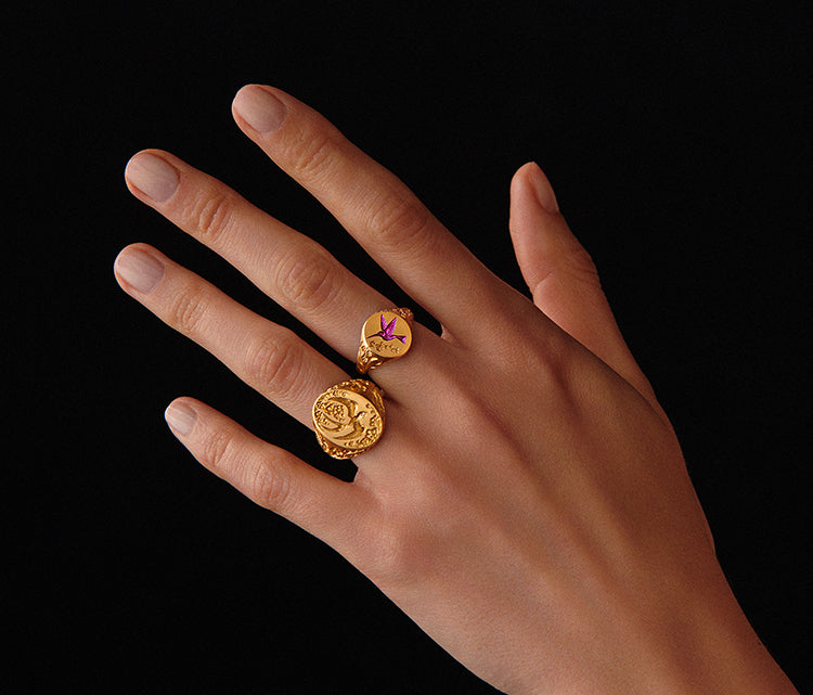 Your Castro Smith piece is crafted to last a lifetime. While fine jewelry is durable, it remains delicate and should be handled with care. Over time, your piece will naturally wear and evolve. This can include more visible engraving, slight darkening inside as it accumulates "life," and signs of normal wear such as scratches and small dents.