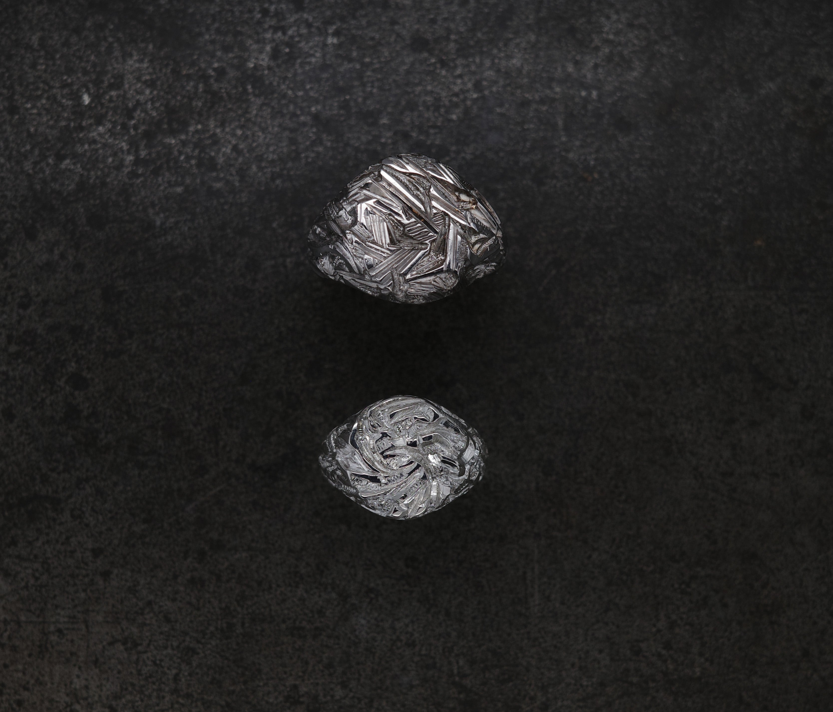 A crystalline structure is meticulously chiseled into the metal using various cutting techniques, reaching a level of detail so intricate that you could stare forever.