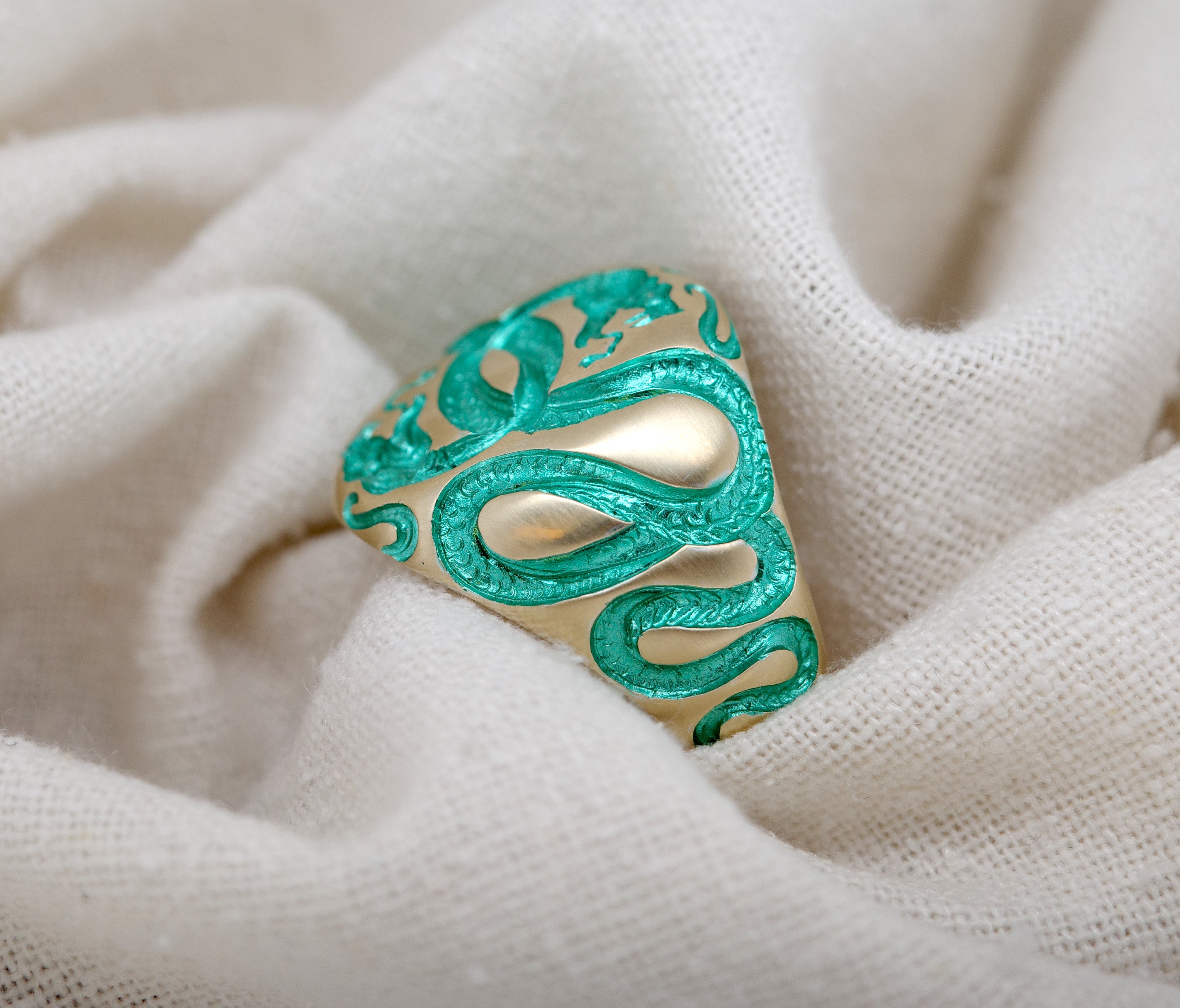 Your Castro Smith piece is crafted to last a lifetime. While fine jewelry is durable, it remains delicate and should be handled with care. Over time, your piece will naturally wear and evolve. This can include more visible engraving, slight darkening inside as it accumulates "life," and signs of normal wear such as scratches and small dents.