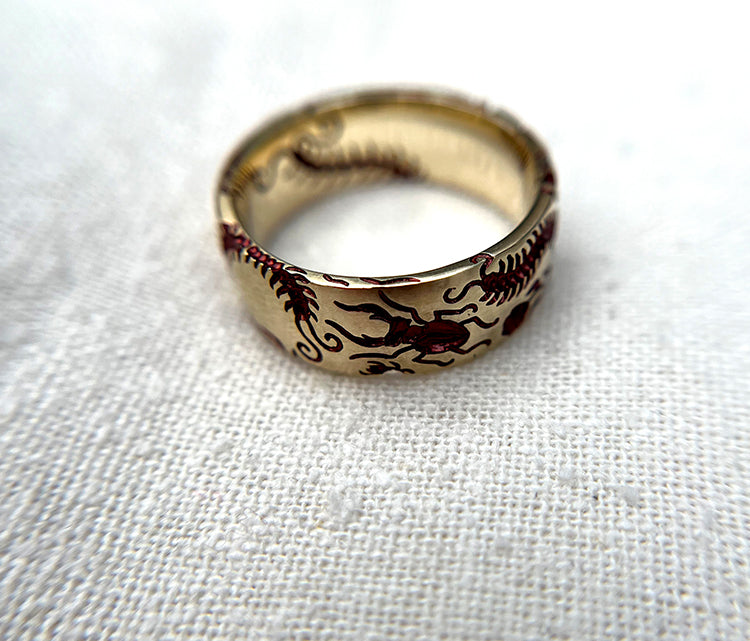 Your Castro Smith piece is crafted to last a lifetime. While fine jewelry is durable, it remains delicate and should be handled with care. Over time, your piece will naturally wear and evolve. This can include more visible engraving, slight darkening inside as it accumulates "life," and signs of normal wear such as scratches and small dents.