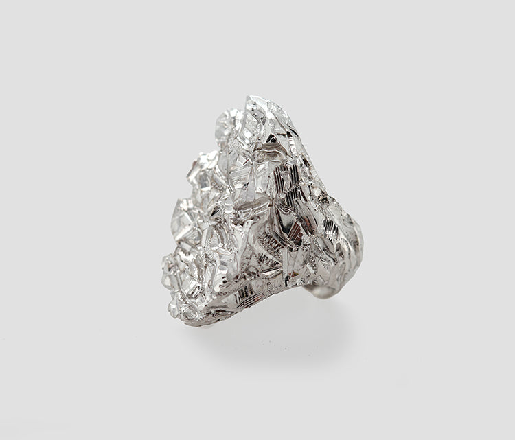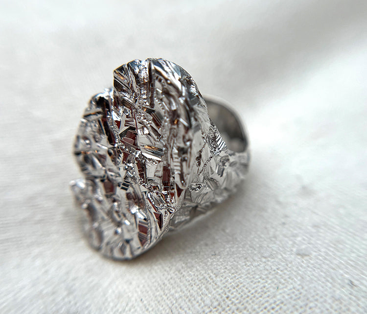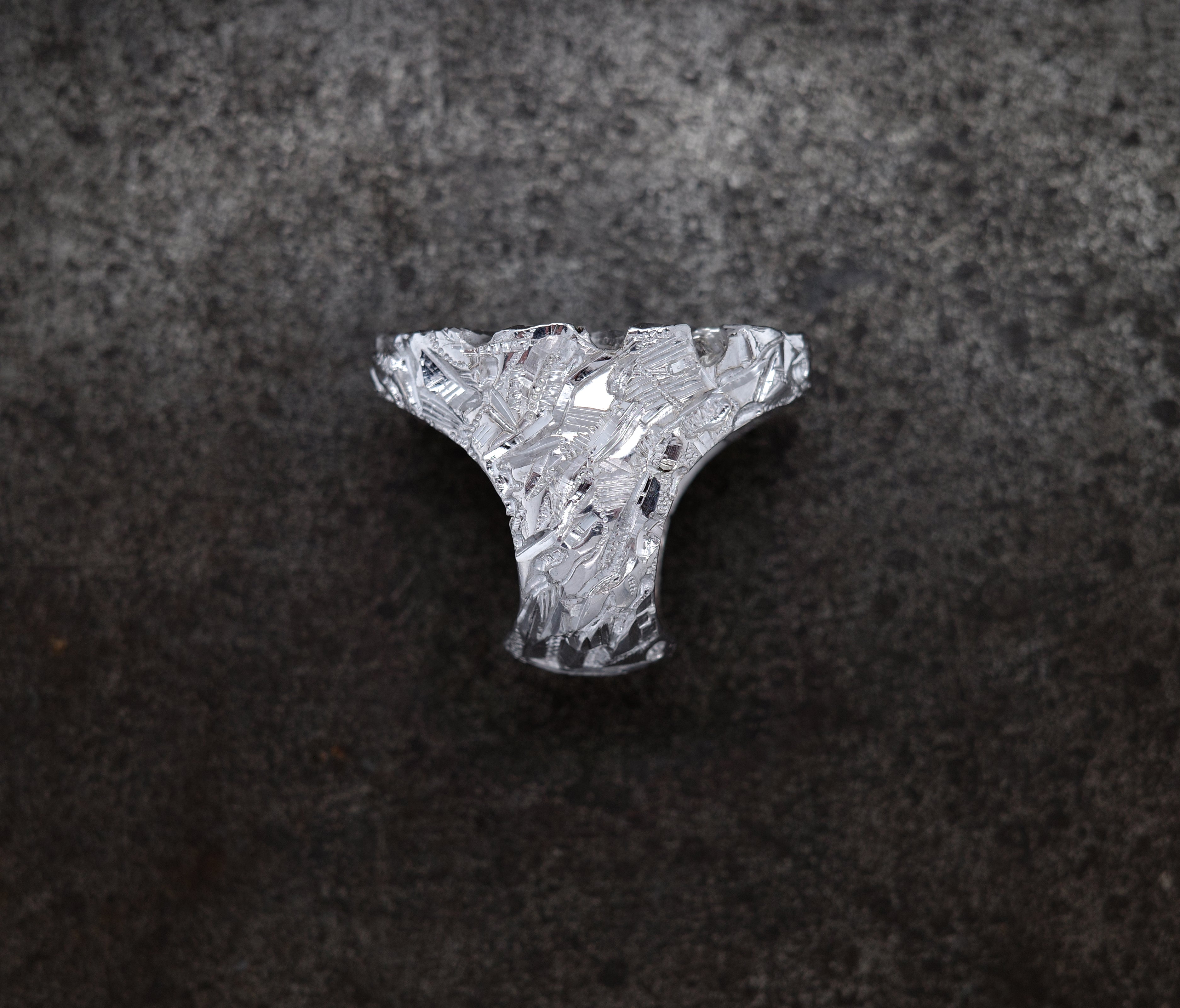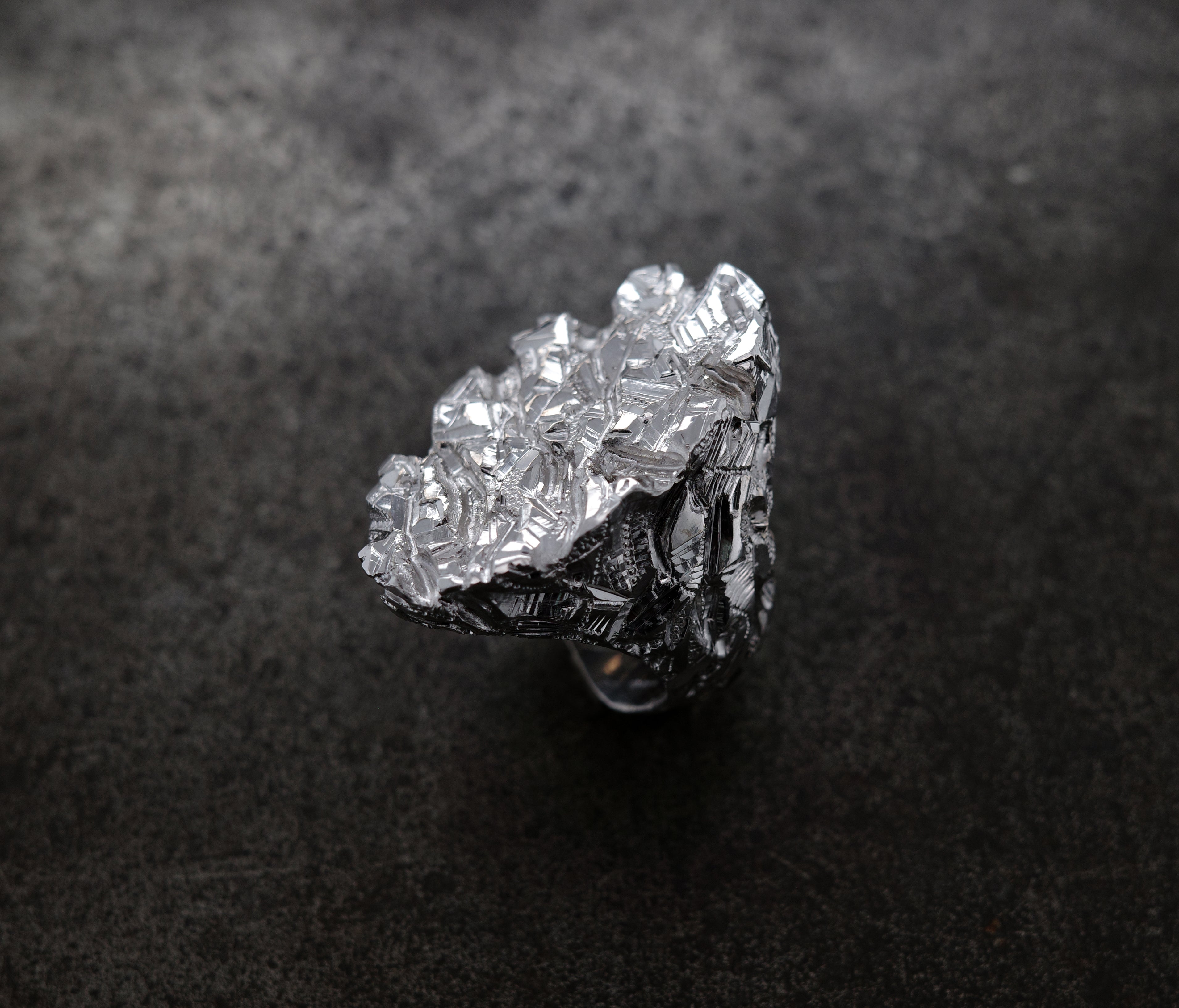 A crystalline structure is meticulously chiseled into the metal using various cutting techniques, reaching a level of detail so intricate that you could stare forever.